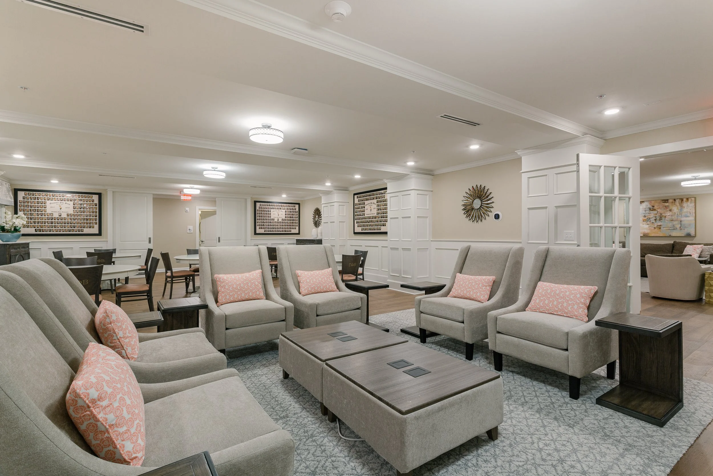 Gamma Phi Beta Sorority house was a renovation/addition on the campus of Oklahoma State University. The building committee requested more bedrooms in order to bring in additional income. In addition, the finishes and plumbing were updated. The Dining Room and Kitchen was reconfigured in order to meet the chapters current needs.
